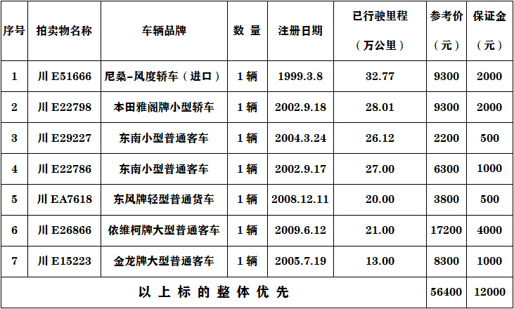 二、注意事項:參與報廢車輛的競買人必須具有收取報廢車輛的相關(guān)資質(zhì)。
